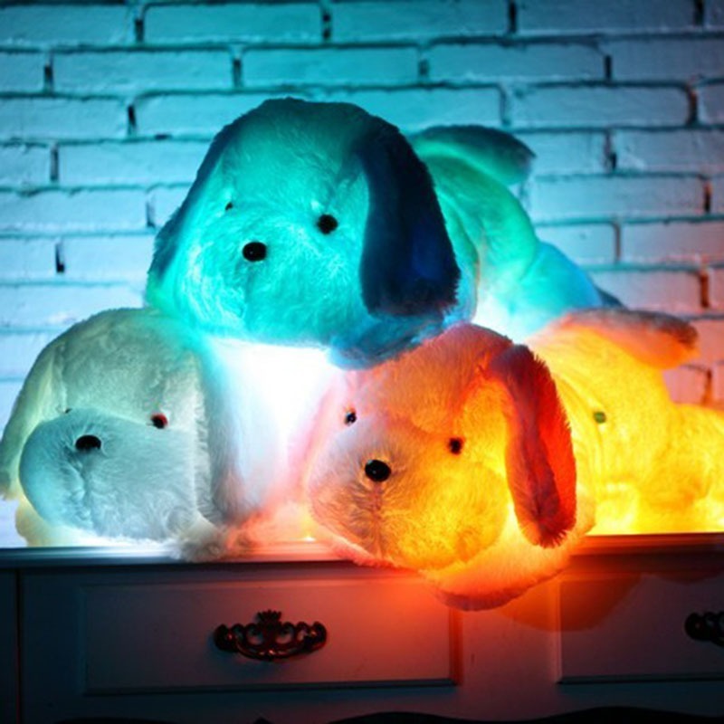 בובת קטיפה גדולה בצורת כלב עם תאורת לד צבעונית