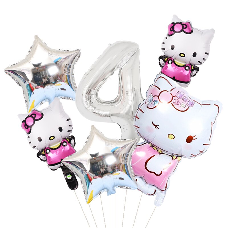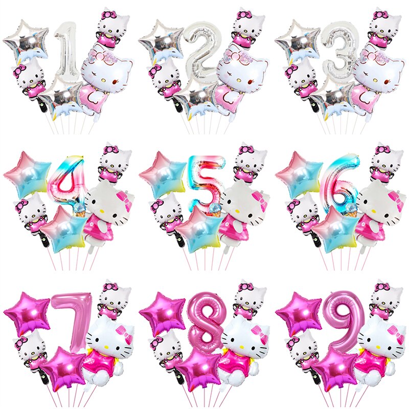 חגיגת יום הולדת – סט 6 בלונים של הלו קיטי עם מספר