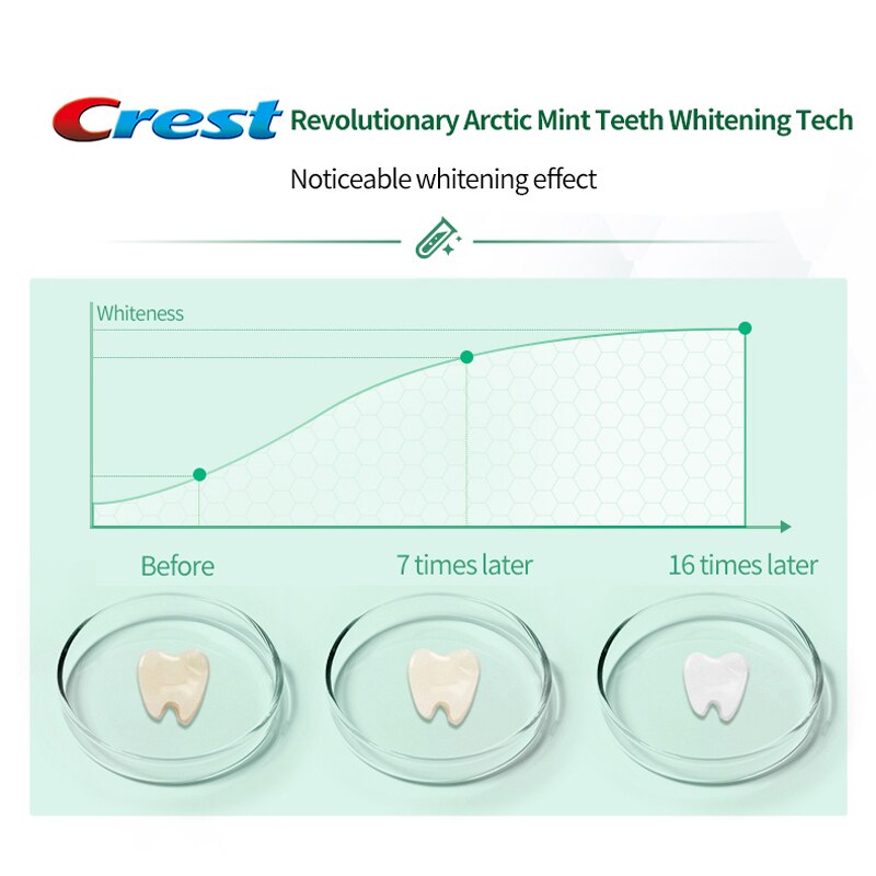 ערכה ביתית חדשה להלבנת שיניים Crest 3D Arctic Mint – עם הזמן והשנים השיניים שלנו מתחילות להצהיב ולצבור כתמים אם זה כתמי סיגריות, קפה, משקאות אלכוהוליים, שוקולד ושאר מוצרים שאינם בריאים לשיניים שלנו, בסופו של דברף לכל אלו יש השפעה על גוון השיניים שלנו.