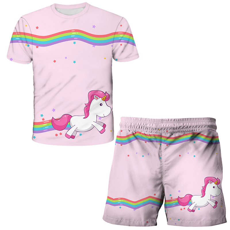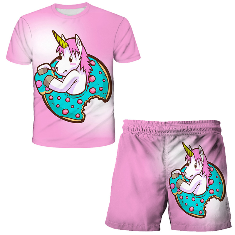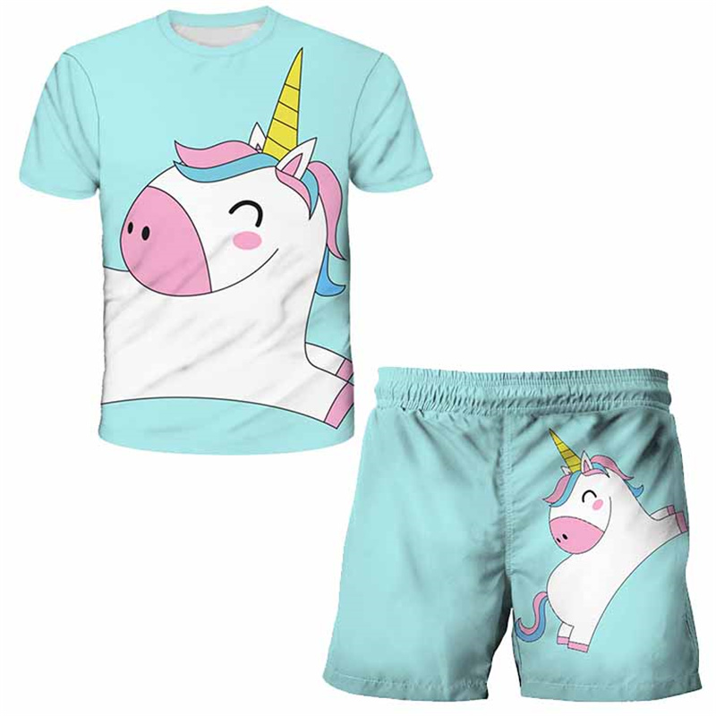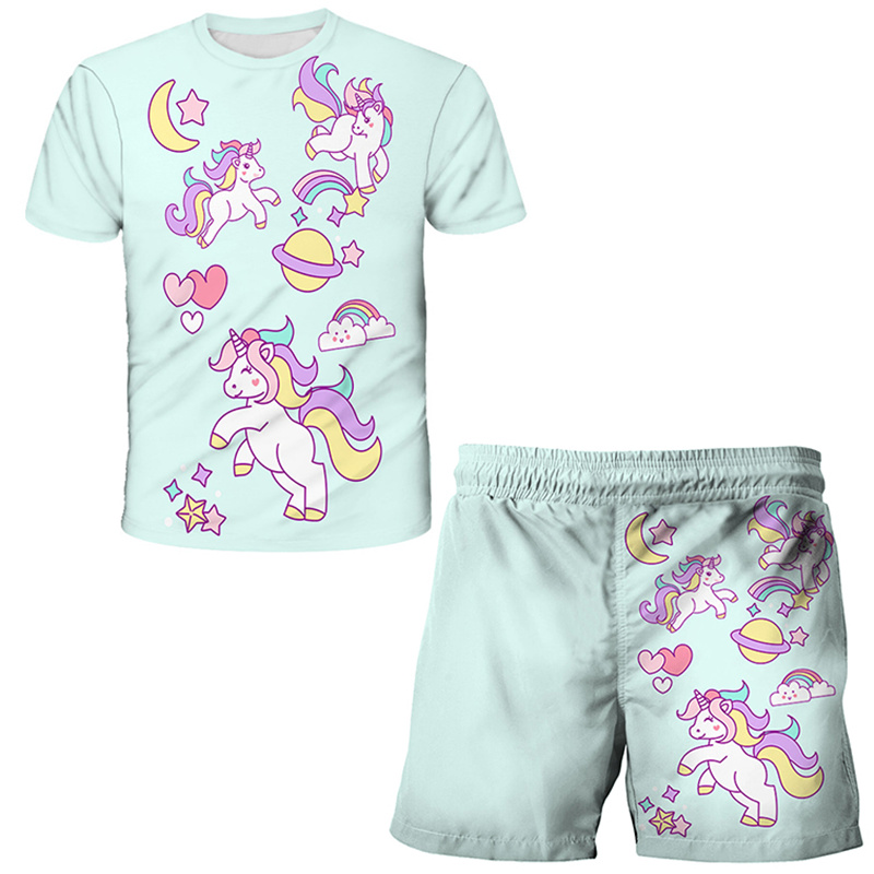 קולקציית הקיץ שלנו כבר כאן! חליפת קיץ לבנות הכוללת סט מכנס וחולצה עם הדפסים של חדי קרן!