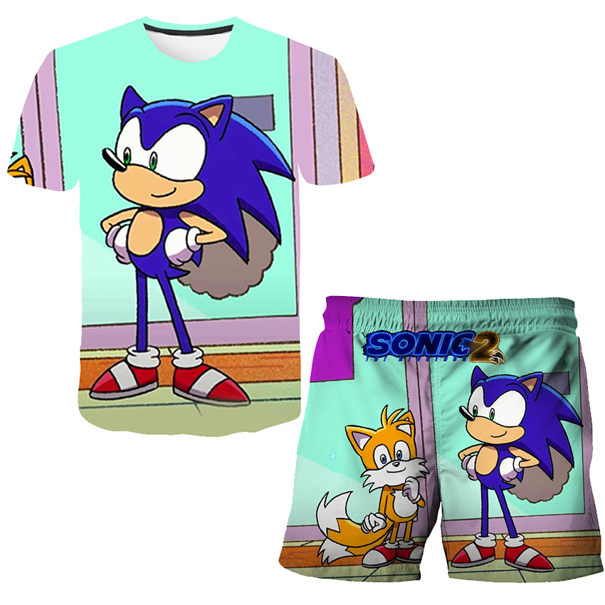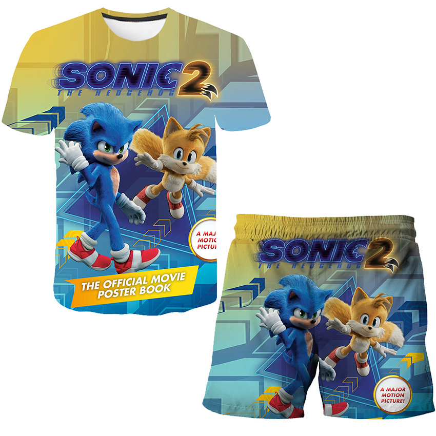 קולקציית הקיץ שלנו כבר כאן! חליפת קיץ הכוללת סט מכנס וחולצה עם הדפסים של סוניק 2!