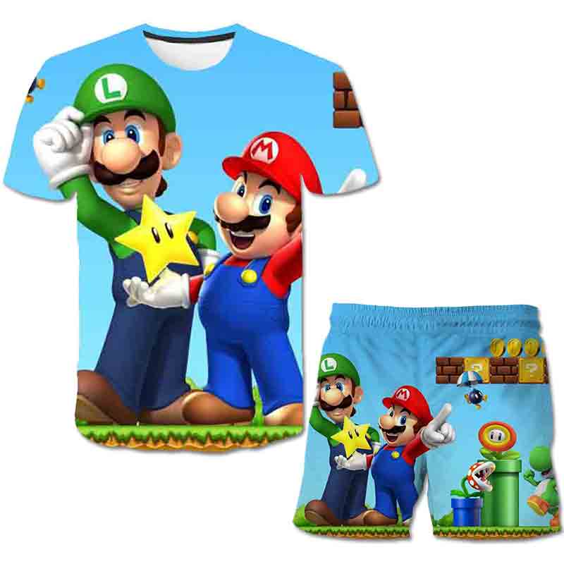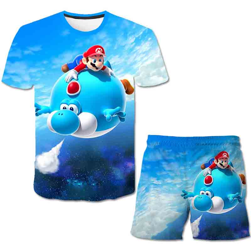 קולקציית הקיץ שלנו כבר כאן! חליפת קיץ הכוללת סט מכנס וחולצה עם הדפסים של סופר מריו!