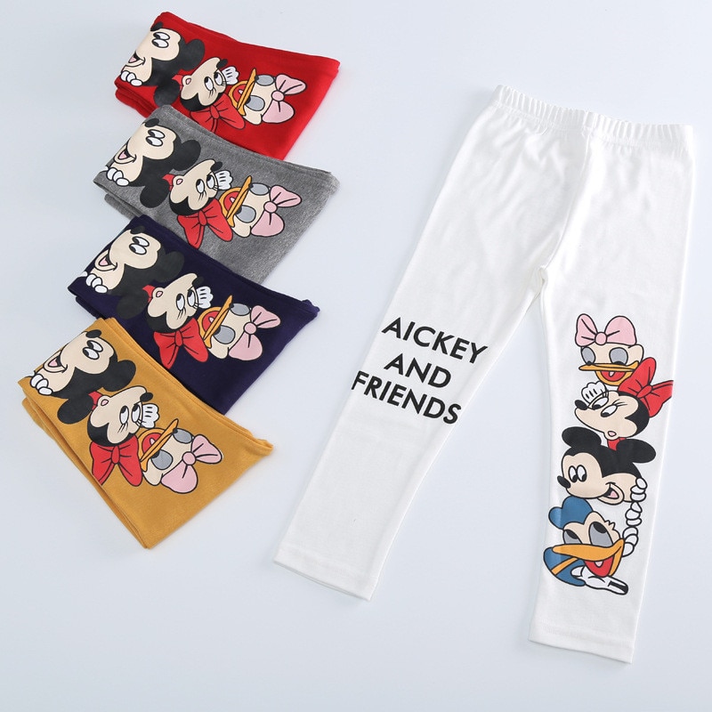 מבחר מכנסי טייץ ארוכים בהדפס דיסני – מיני ומיקי מאוס. למכנסיים גומי במותן.