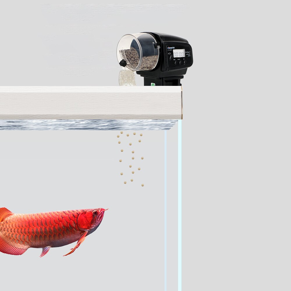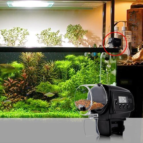 • למאכיל הדגים האוטומטי מסך LCD מובנה עם שעון.