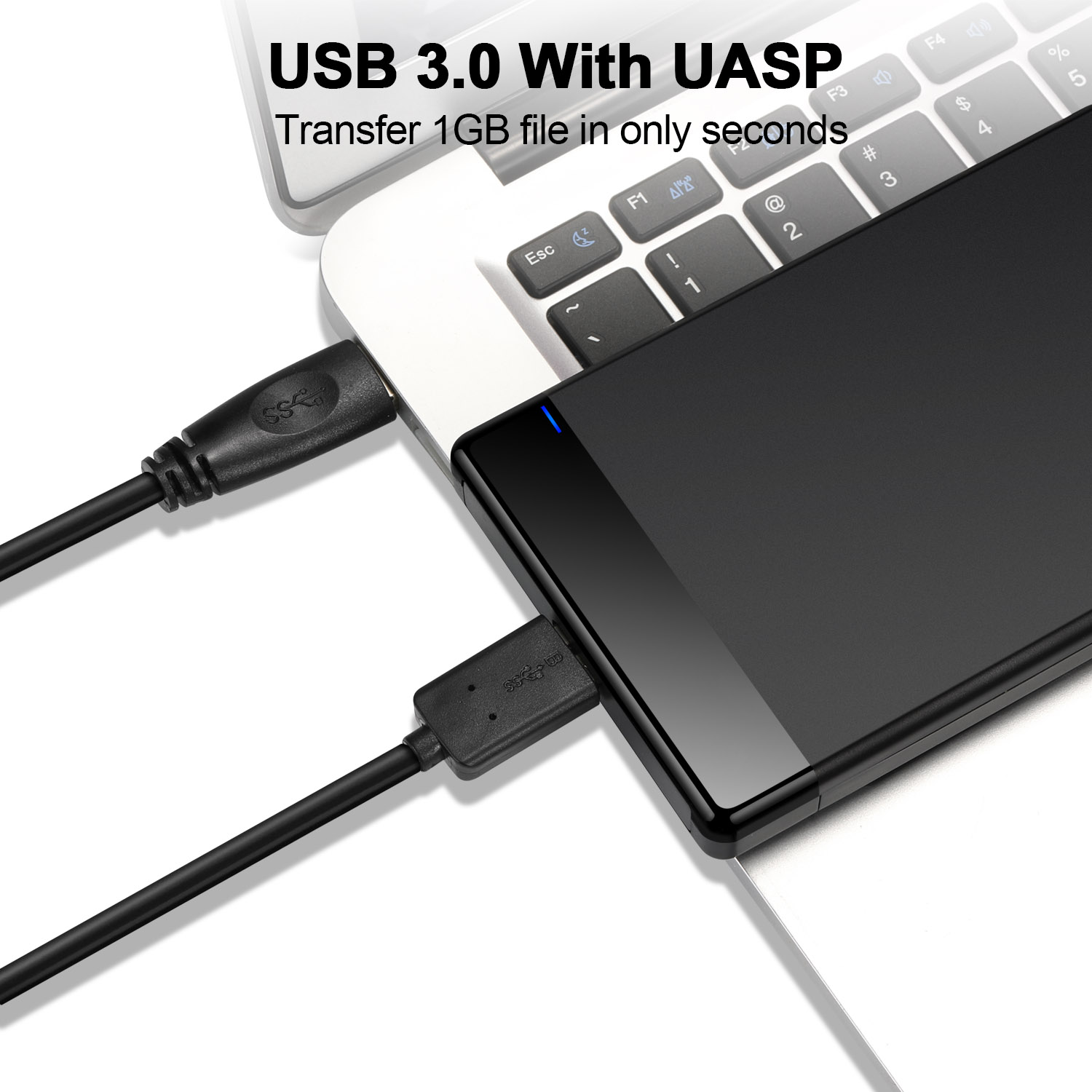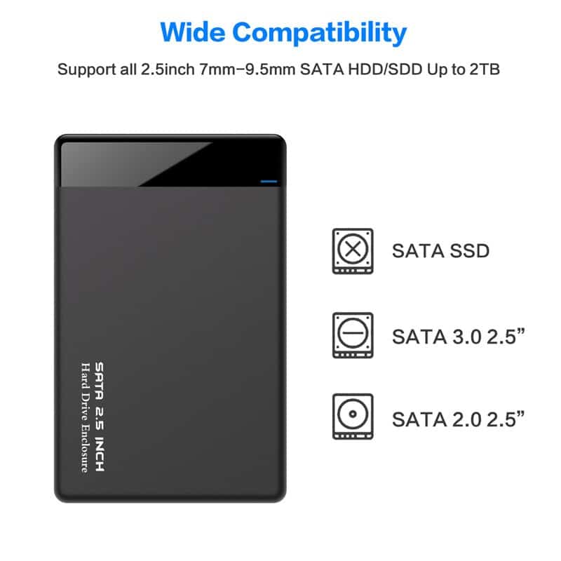המארז החיצוני תומך בדיסקים קשיחים מכניים סטנדרטיים בגודל 2.5 אינץ’ וכן בכונני SSD, ומאפשר לך להוסיף בקלות אחסון חיצוני נייד למחשב שלך. בזכות ממשק ה- USB 3.0, מהירות העברת הנתונים יכולה להגיע עד ל- 5GB לשנייה, מהיר הרבה יותר מממשק ה- USB 2.0.