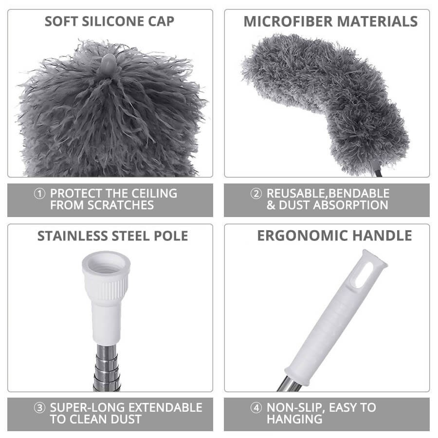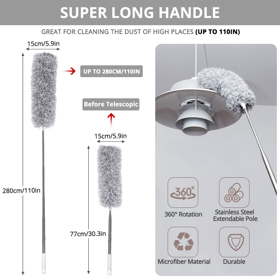 - מברשת מיקרופייבר טלסקופית לניקוי גם במקומות גבוהים במיוחד!