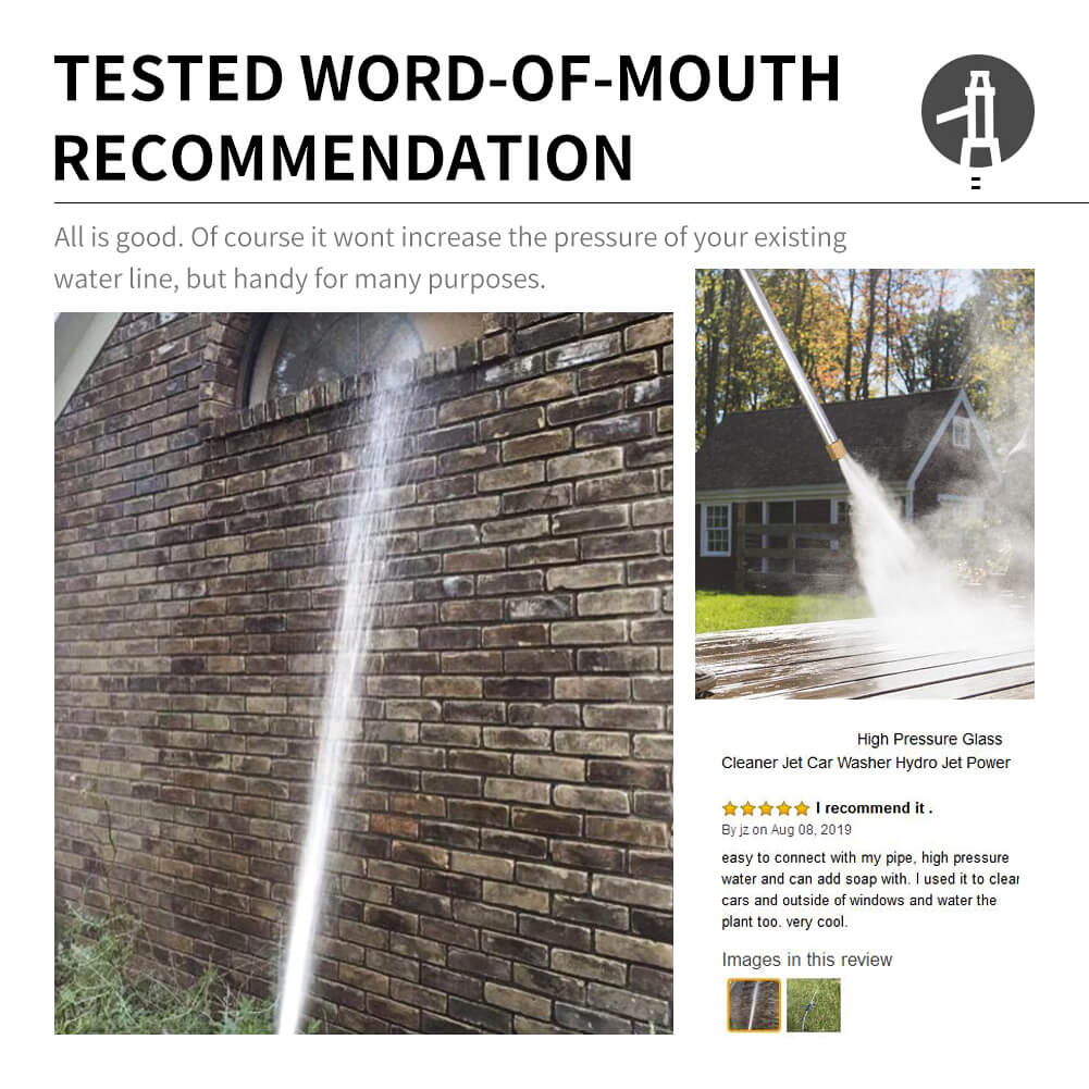 - צינור לחץ מומלץ לשטיפת רכב, שוטף ומנקה בקלות כל משטח.