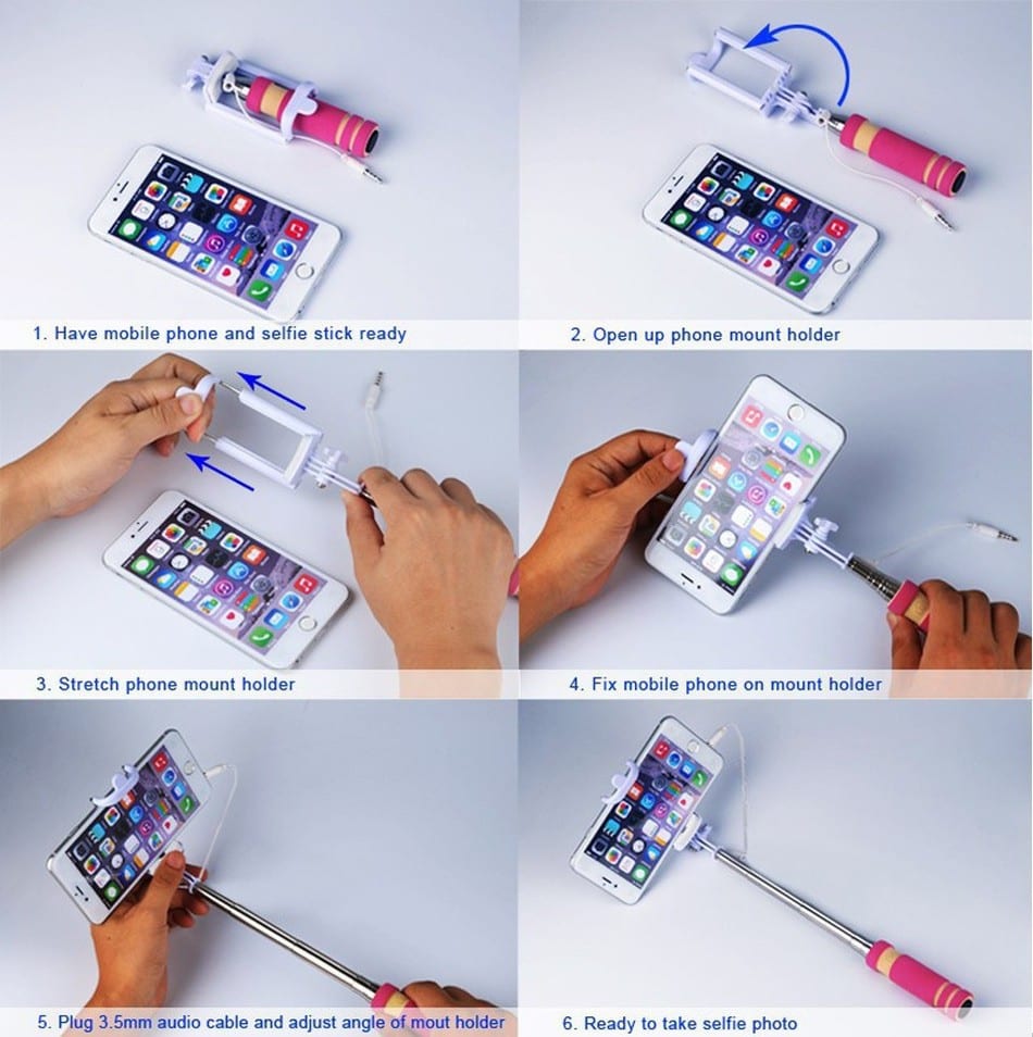 מוט סלפי מקצועי מתארך – בעל כבל חיבור לסמארטפון