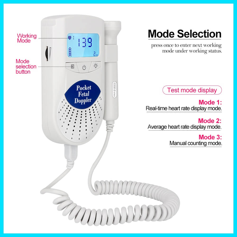• יש למכשיר 3 מצבי בדיקה: בדיקת דופק הלב של התינוק בזמן אמת, בדיקת ממוצע דופק הלב, ומצב בדיקה ידני.
