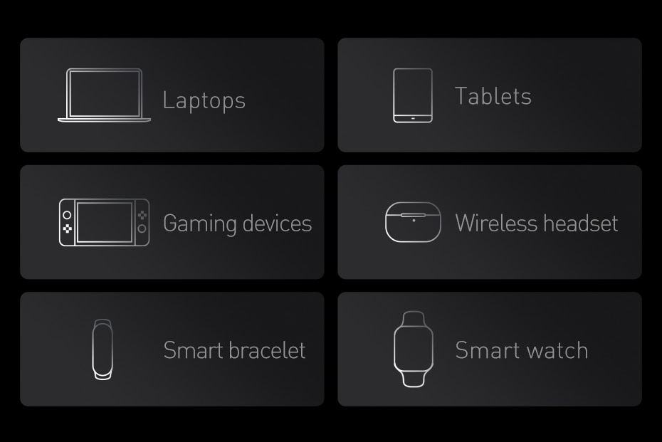 שומר על חיי סוללה ארוכים ומטעין בצורה מהירה ובטיחותית כל סמארטפון, טאבלט או מחשב נייד.