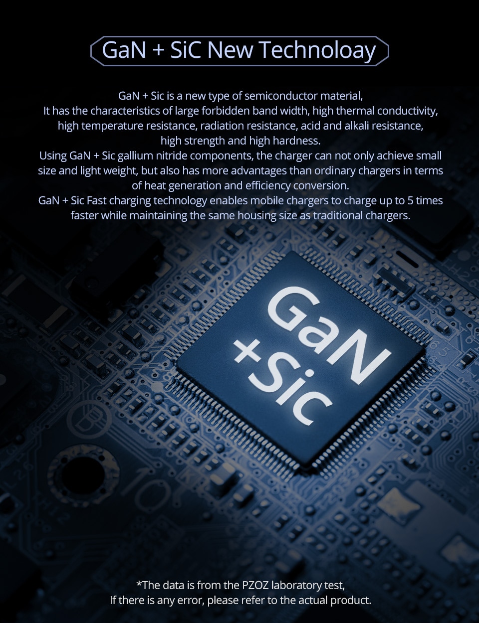 מטען סופר מהיר 65W בטכנולוגיית GaN + Sic מבית PZOZ עם 3 יציאות טעינה – שתיים Type-C/PD ואחת USB, קטן מימדים וקומפקטי במיוחד, תומך בכל טכנולוגיות הטעינה המהירות, מתאים גם למחשבים ניידים
