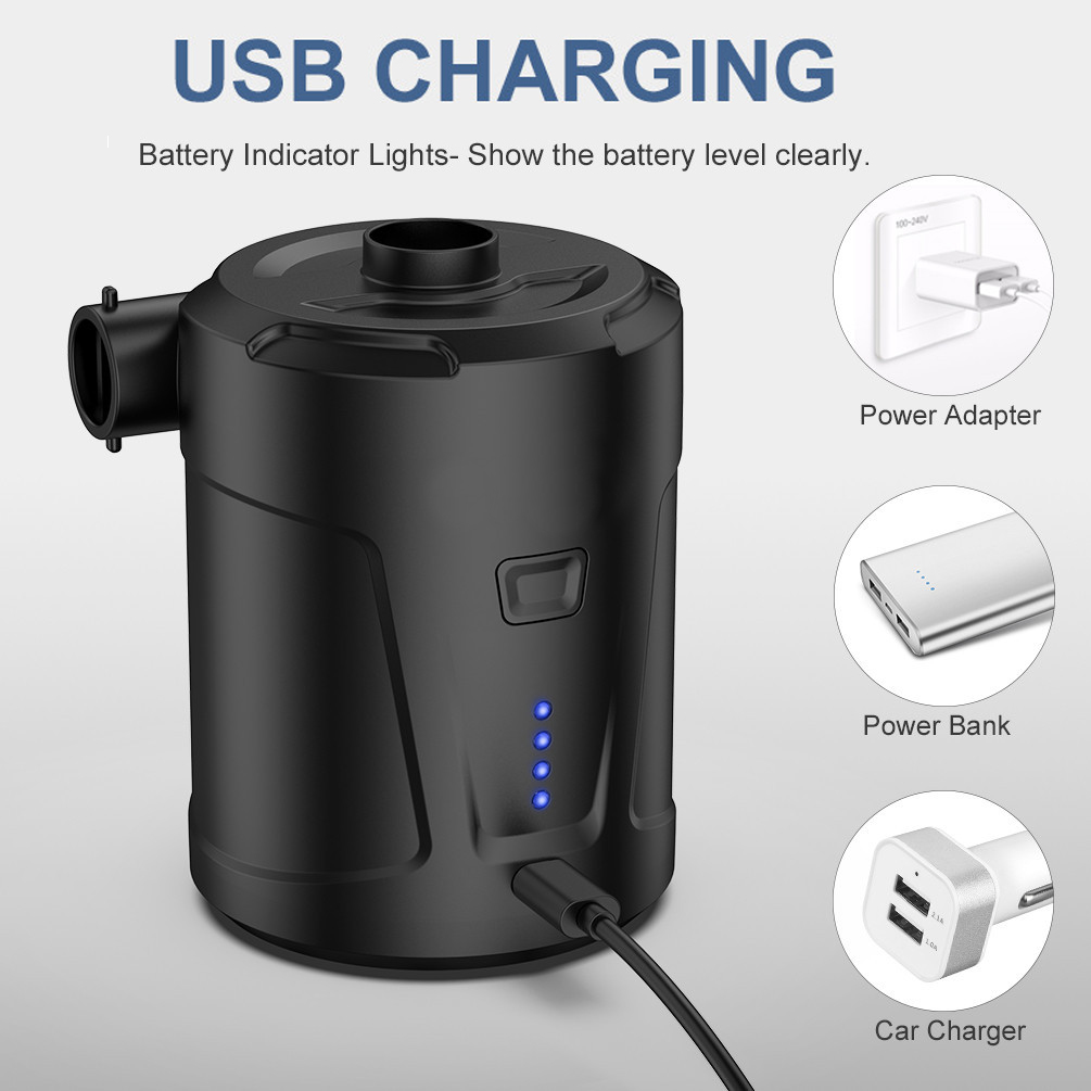 אתה יכול לטעון בנוחות את המשאבה באמצעות שקע חשמל, מחשב, מטען USB לרכב, או אפילו ספק כוח נייד. אין יותר טרחה עם כבלים וחוטים!