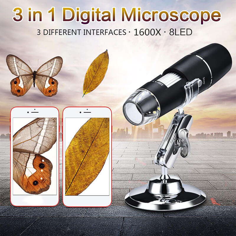 מיקרוסקופ דיגיטלי משוכלל להצגת עצמים בהגדלה של עד פי 1600! עובד בפעולה קלה ופשוטה, כל שעליכם לעשות הוא רק לחבר את המיקרוסקופ הדיגיטלי לחיבור USB / TYPE-C / MICRO-USB למחשב או לסמארטפון (דרושה התקנת אפליקציה חינמית) להפעיל את תוכנת השימוש וההפעלה ואתם בשידור! כל עצם שתקרבו לעינית המיקרוסקופ, יוצג מיד על גבי מסך הטלוויזיה בהגדלה של פי 1600 מגודלו המקורי! בתצוגה ברורה וגדולה על גבי מסך המחשב או הסמארטפון שלכם ותאפשר לכם להקליט תמונות וסרטוני ווידאו של האובייקט הנצפה!