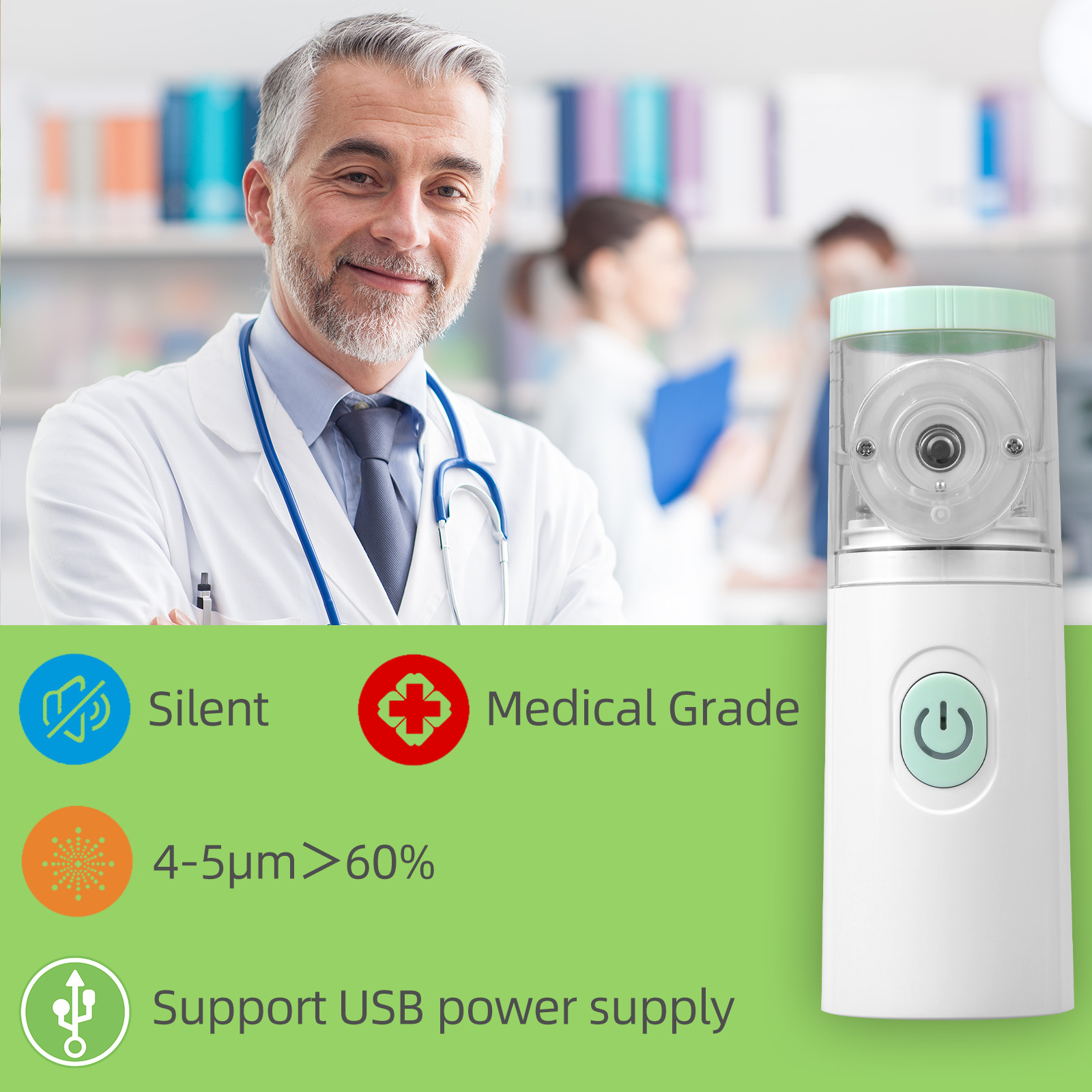 מכשיר אינהלציה נייד, שקט וקל להפעלה.