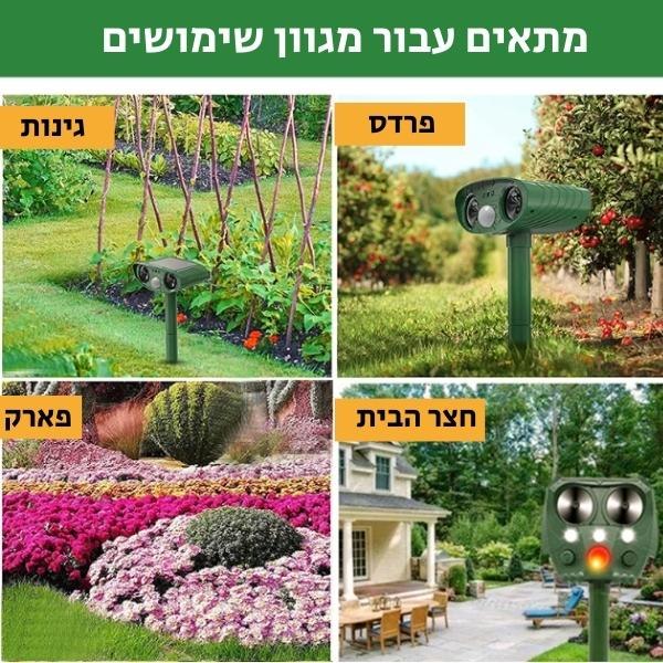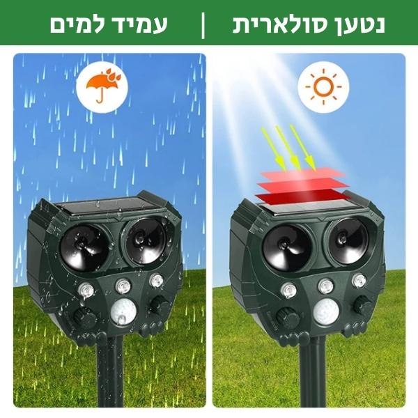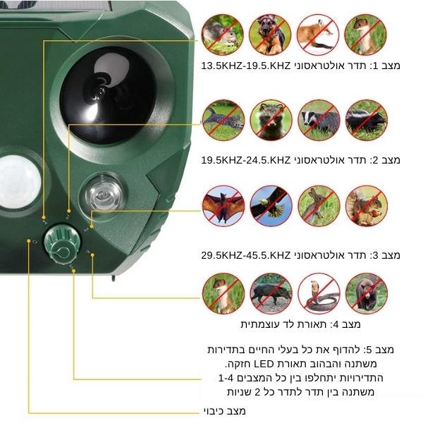 מצב 2: תדר אולטראסוני 15.5kHz-25kHz- להרחקת חיות כגון חתולים, דביבונים, גיריות, בואש וכו'