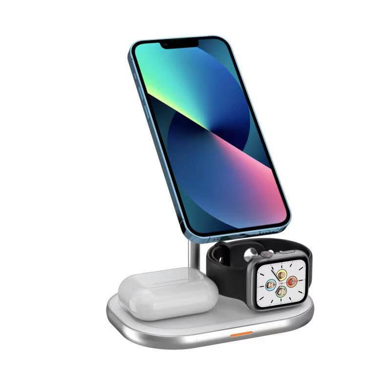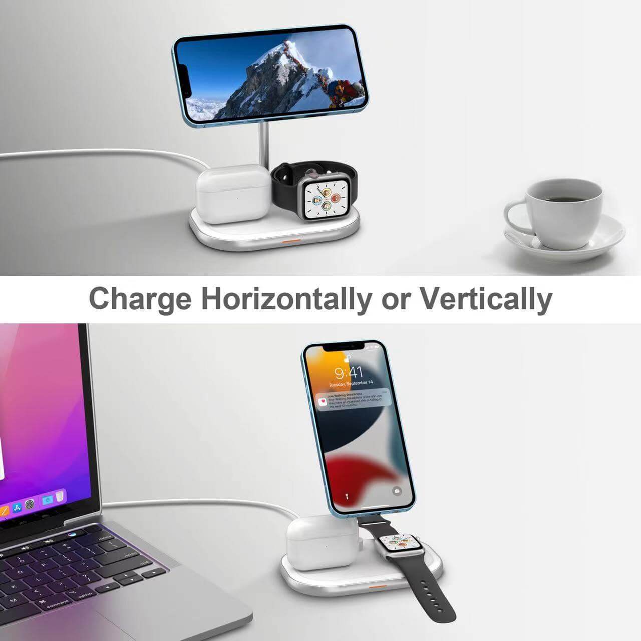 מעמד הטעינה האלחוטי 3 ב-1 הוא הפתרון האולטימטיבי לטעינה נוחה ומהירה של מכשירים אלחוטיים פופלריים כמו שעון אפל ווטש, אוזניות איירפודס וכל טלפון חכם התומך בטעינה אלחוטית.