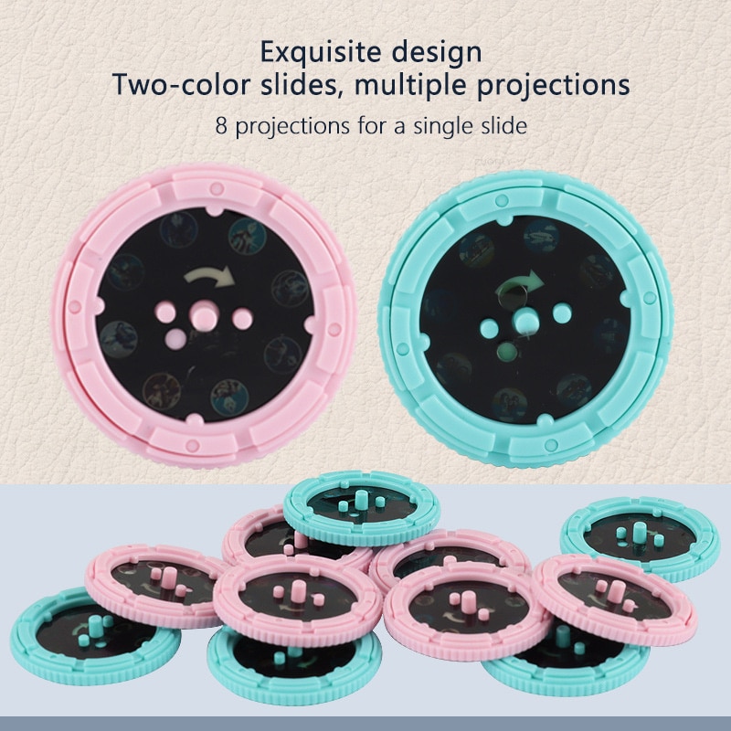 מקרן בצורת פנס הכולל 32 שקופיות עם תמונות מרהיבות: 4 דיסקים להחלפה, עם 8 תמונות בכל אחד מהם. (ניתן לשדרג ל-10 דיסקים 80 שקופיות)