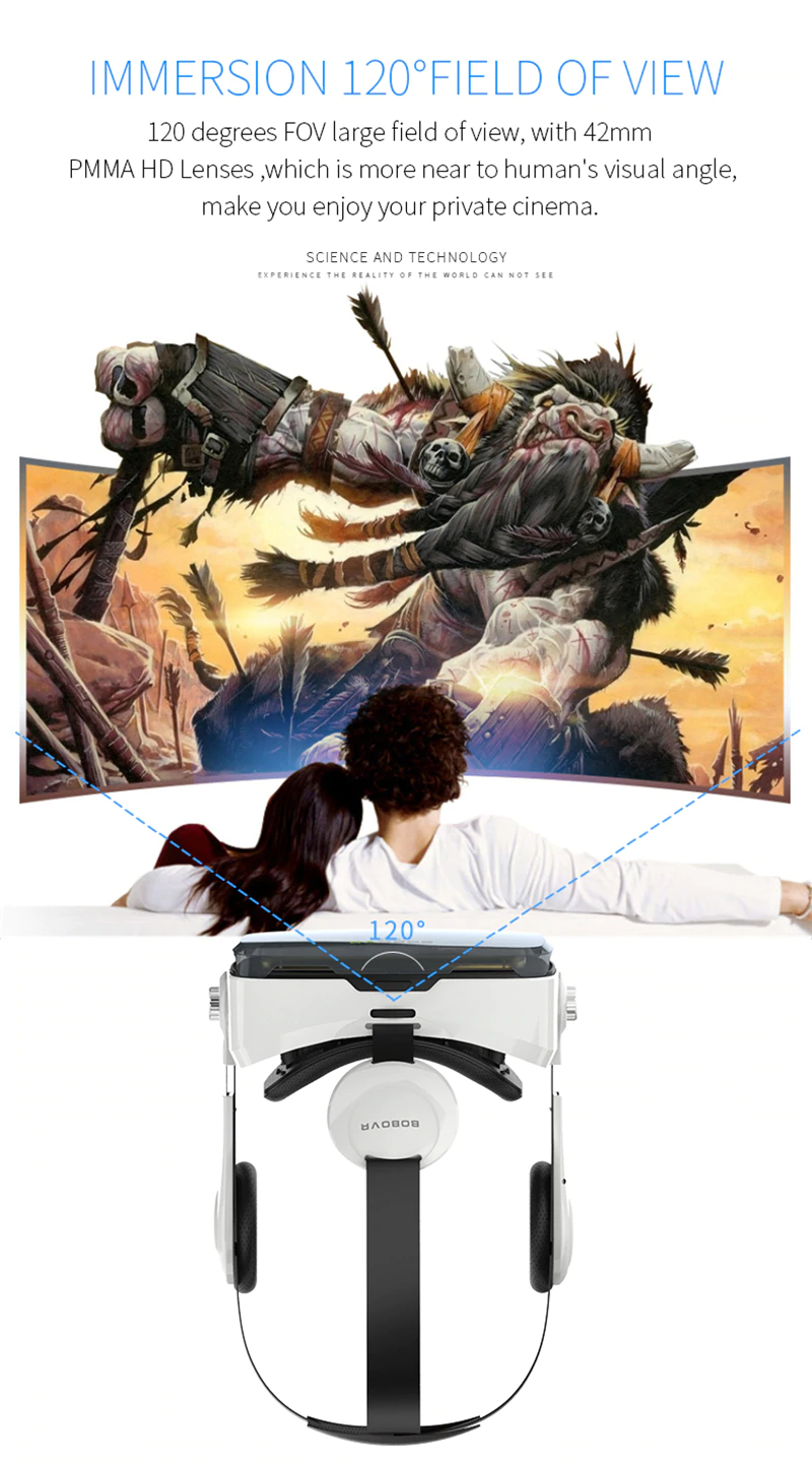 משקפי מציאות מדומה עם אוזניות מובנות ושלט בלוטות' לחווית משחק מושלמת מבית BOBOVR.