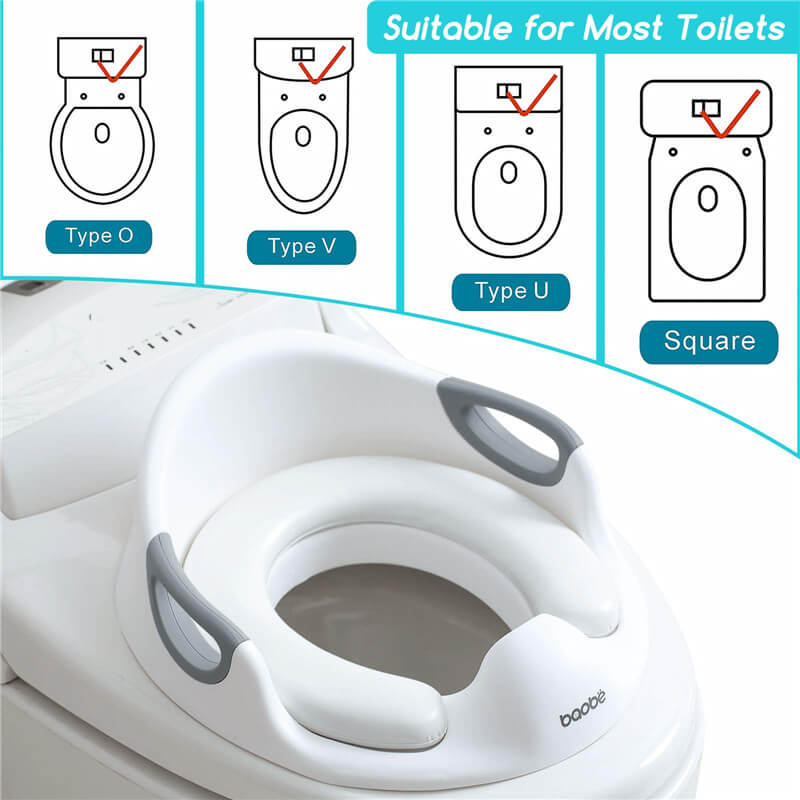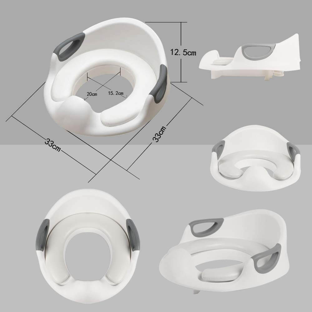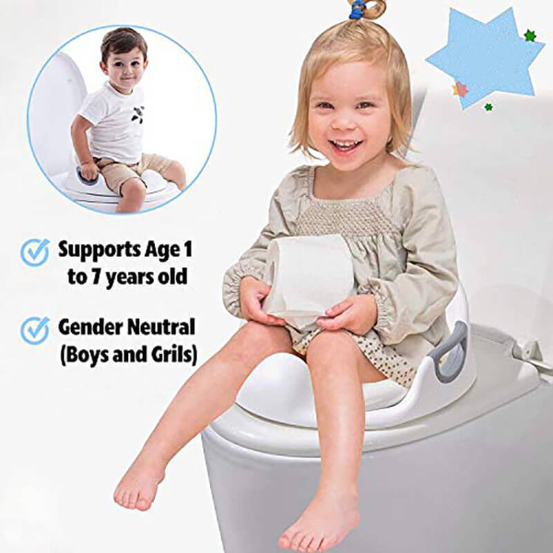 המתאם שלנו כולל שתי ידיות אחיזה יציבות המספקות לילדכם תחושת ביטחון ויציבות, מה שגורם לו להרגיש בנוח בזמן השימוש בשירותים. העיצוב המתכוונן מבטיח שהוא מתאים לרוב השירותים הסטנדרטיים, ומתאים ילדים בגילאי 1-7 שנים.