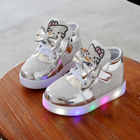 - נעלי אורות מנצנצים עם פפיון מתוק של הלו קיטי!