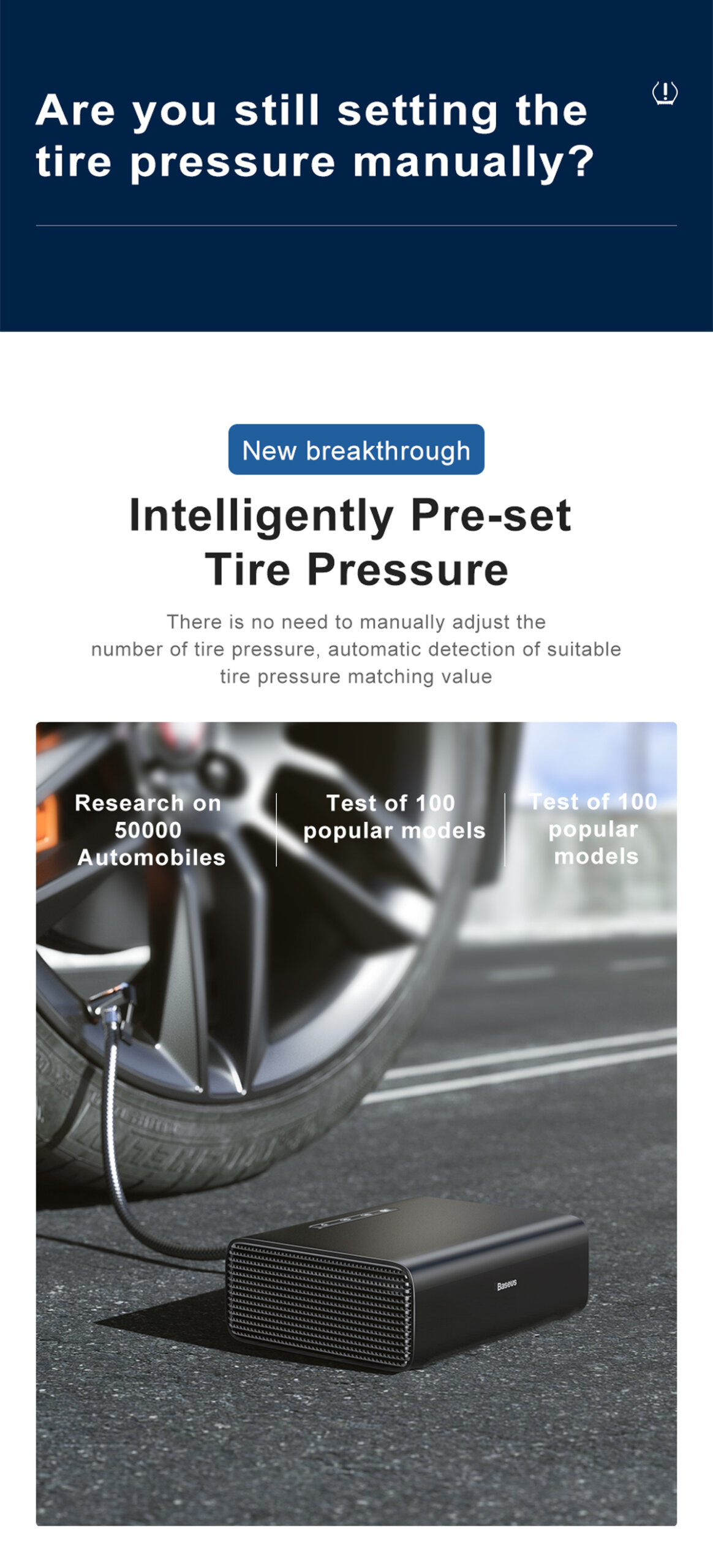 כוונו בלחיצת כפתור את לחץ האוויר הנדרש והחלו לנפח. זמן מהירות ממוצעת לניפוח גלגל הוא כ-50 שניות – מהיר ביותר!