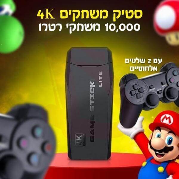 קונסולת משחקי רטרו בצורת סטיק עם 10,000 משחקים ממש כמו שהיינו ילדים, מגיעה עם שני שלטי משחק אלחוטיים מקצועיים.