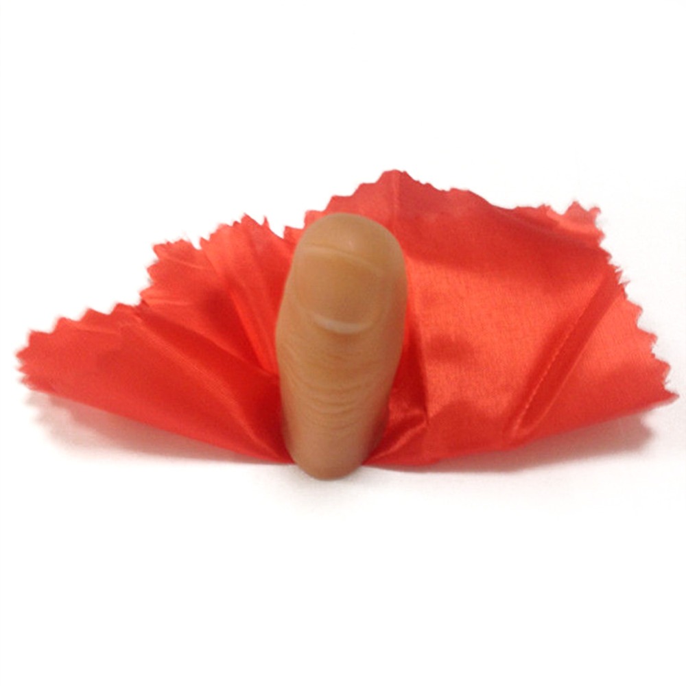 מכניסים את המטפחת לאצבע המדומה שמוחבאת ביד והופ! המטפחת נעלמת! (האצבע מדומה מולבשת על הבוהן והמטפחת מסתתרת בפנים)