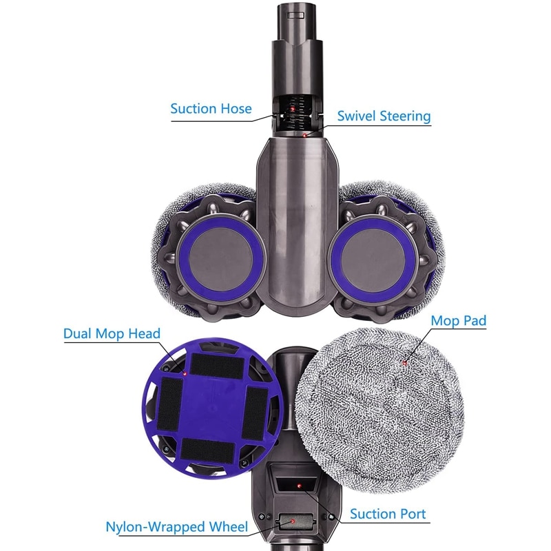 ראש שאיבה, שטיפה וניגוב ממונע תואם לדייסון עם שני מגבים נעים לניקוי וקירצוף מושלמים!