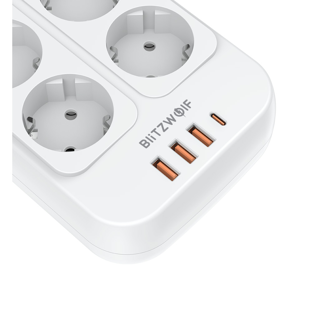 רב שקע 8 שקעים כולל 3 יציאות USB ועוד יציאה טייפ סי BlitzWolf 2500W
