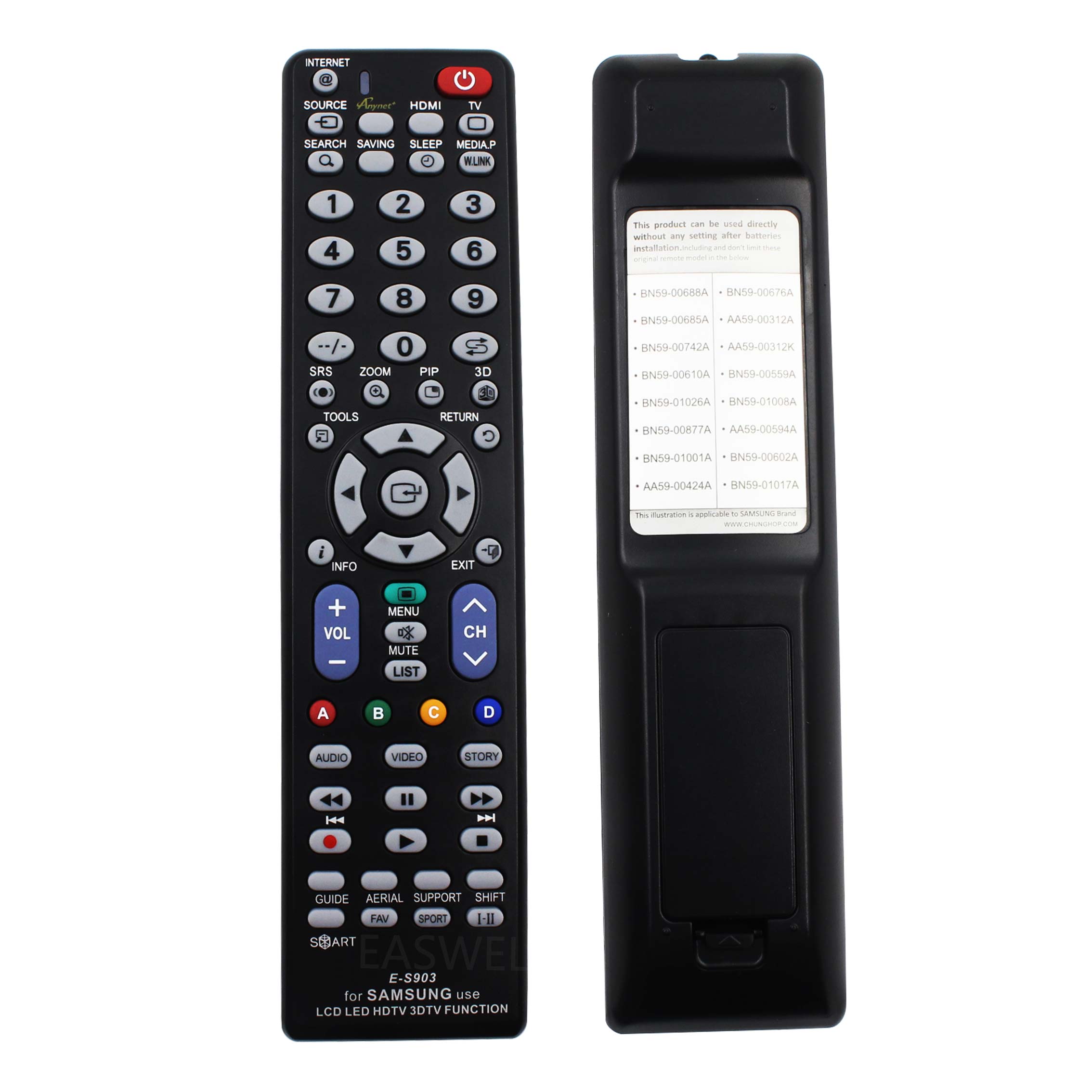 השלט מתאים למרבית סוגי הטלוויזיות של SAMSUNG סמסונג כגון SAMSUNG LED LCD HDTV 3DTV ועוד..