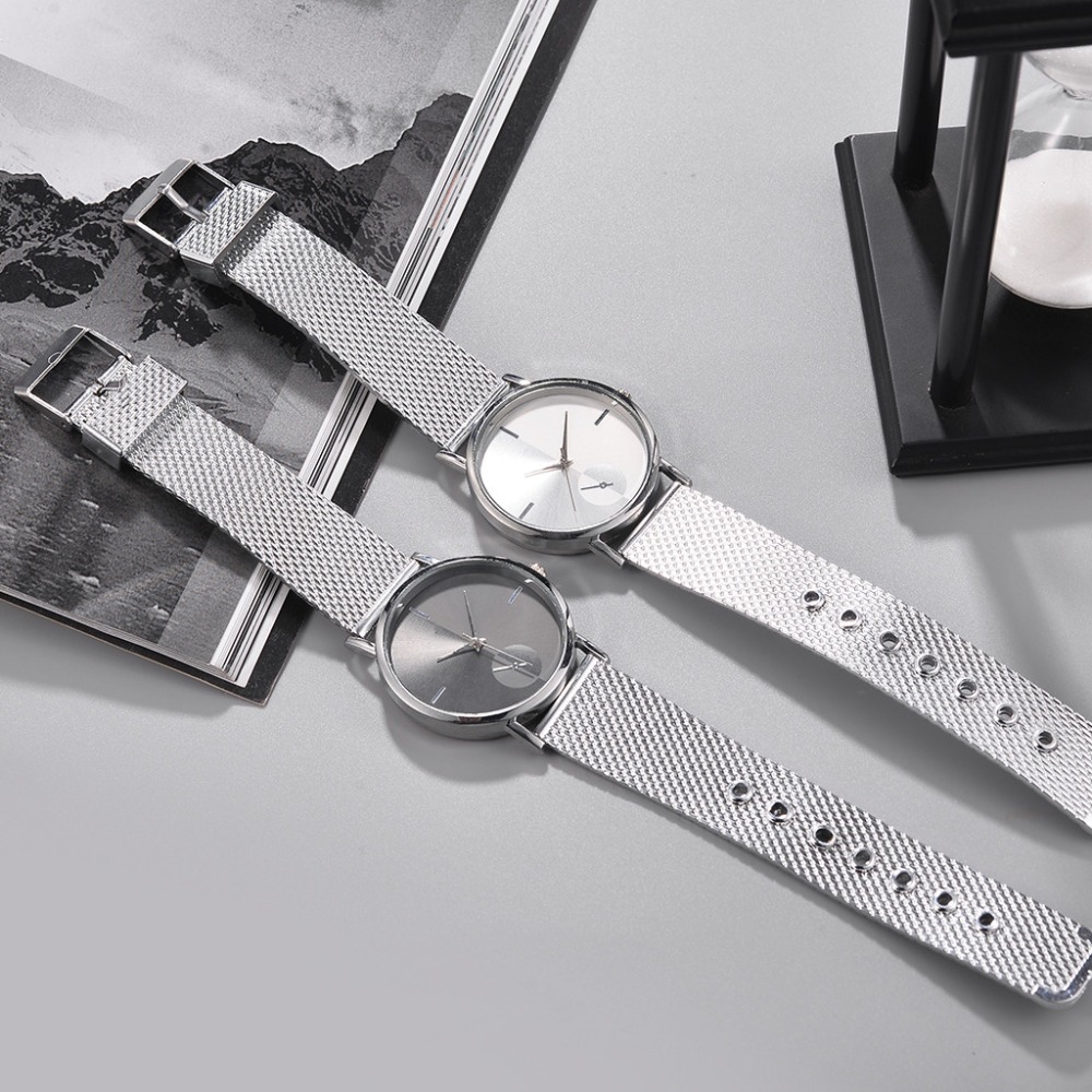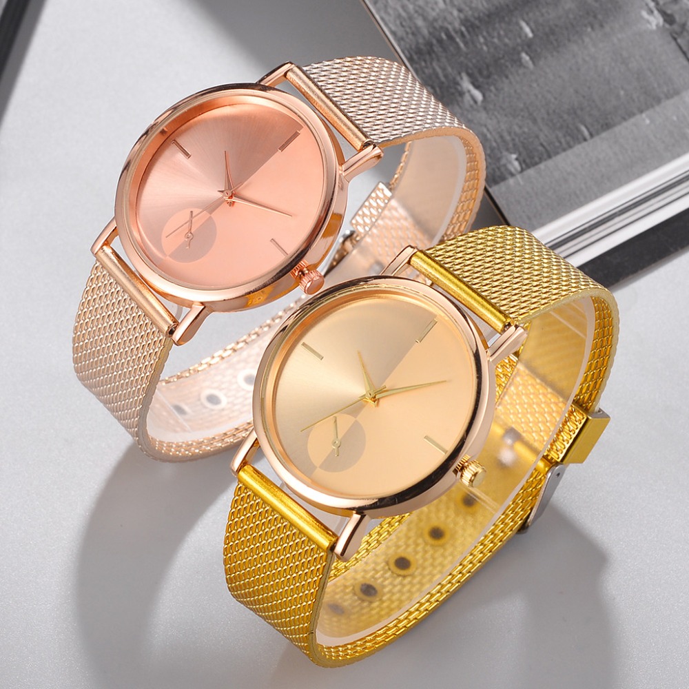 שעון יד לנשים ממתכת עם רקע בשני גוונים. רצועת מתכת רשת. שעון מאוד אופנתי ועכשווי!