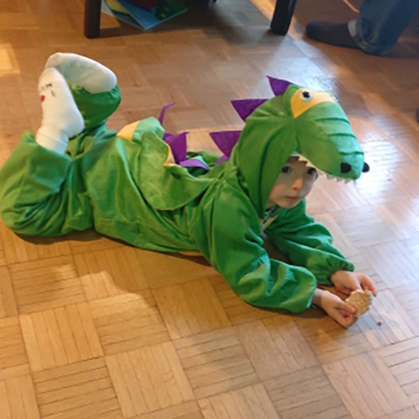 תחפושת נחמדה ומקורית של דינוזאור לחג פורים הקרב ובא!