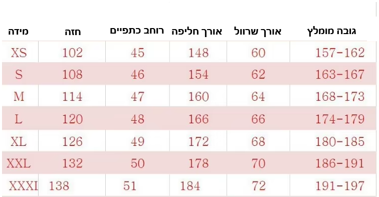 מבחר מידות ודוגמאות לבחירה.