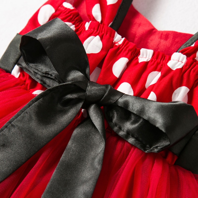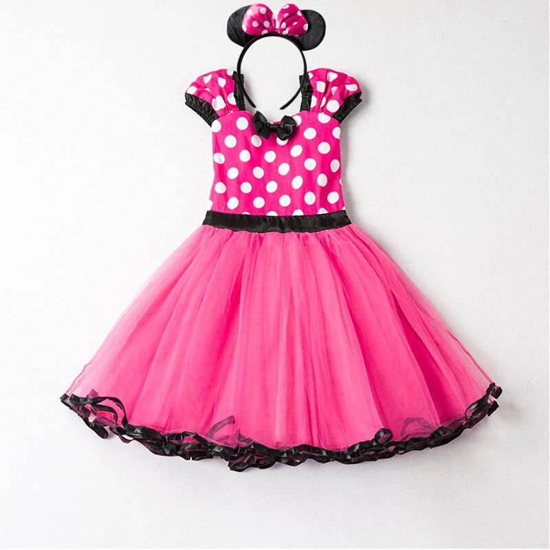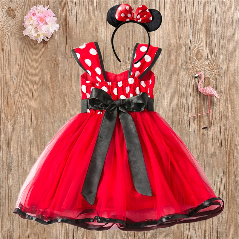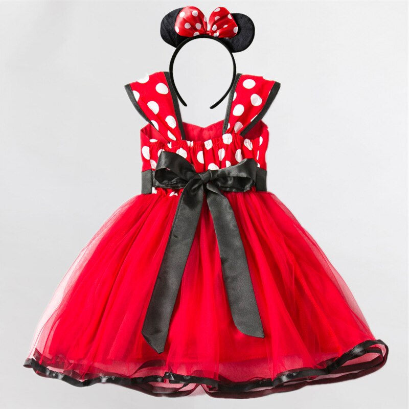 - תחפושת מיני מאוס הכוללת שמלה ארוכה עם נקודות, פפיון בחזית ואוזני מיני מאוס תואמות.
