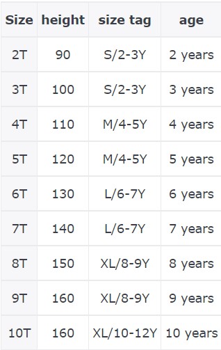 2T – גיל שנתיים, גובה 90 ס”מ.
