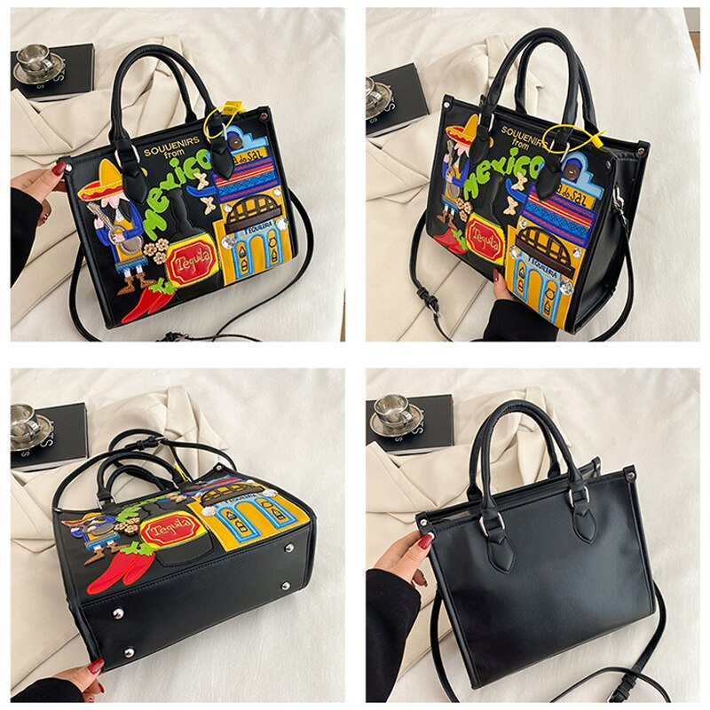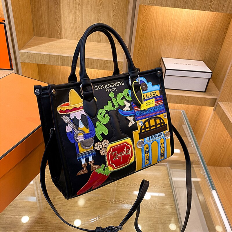 תיק צד לנשים עם הדפס מודרני בסגנון מקסיקו
