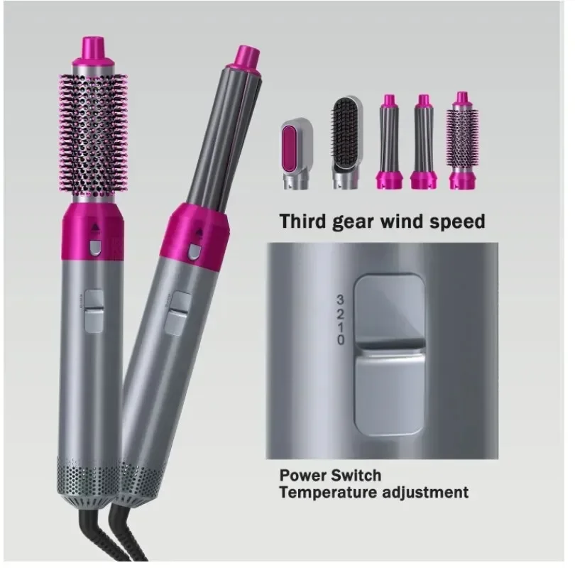גלי את הסוד למראה שיער מושלם עם מברשת הפן החשמלית 5 ב-1! האם נמאס לך לבזבז זמן וכסף במספרות? עכשיו יש לך פתרון מהפכני בהישג יד. מברשת השיער 5 ב-1 היא המעצבת האישית שלך, מביאה את הסטודיו הביתה עם חמישה ראשים מתחלפים לכל סגנון שתרצי.