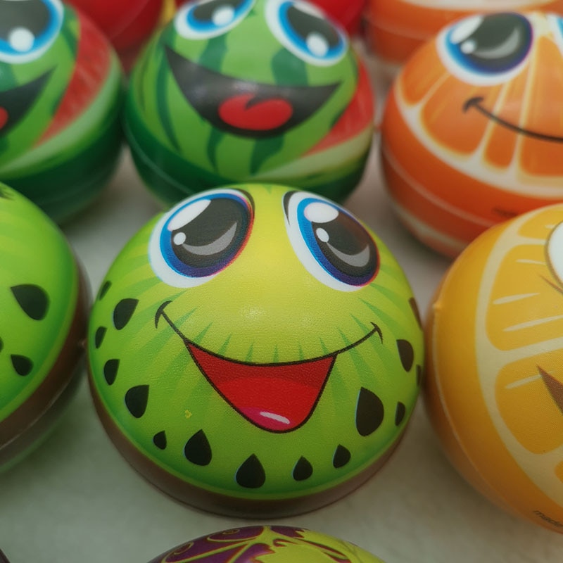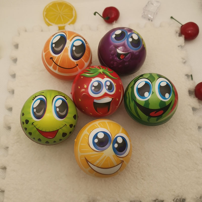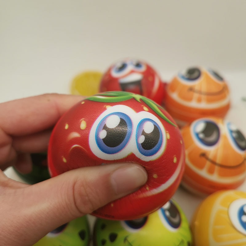 כדורי לחץ בעיצובים מגניבים של אימוג'י פירות בגודל 6.3 ס"מ כל כדור, הכדור עשוי כולו ספוג וחומר רך כך שהוא מתאים ללחיצות