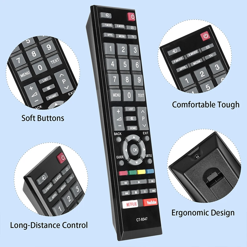 שלט לטלוויזיות TOSHIBA Smart TV כולל מקשי קיצור – ל- NETFLIX, יוטיוב, כפתור בית ועוד..