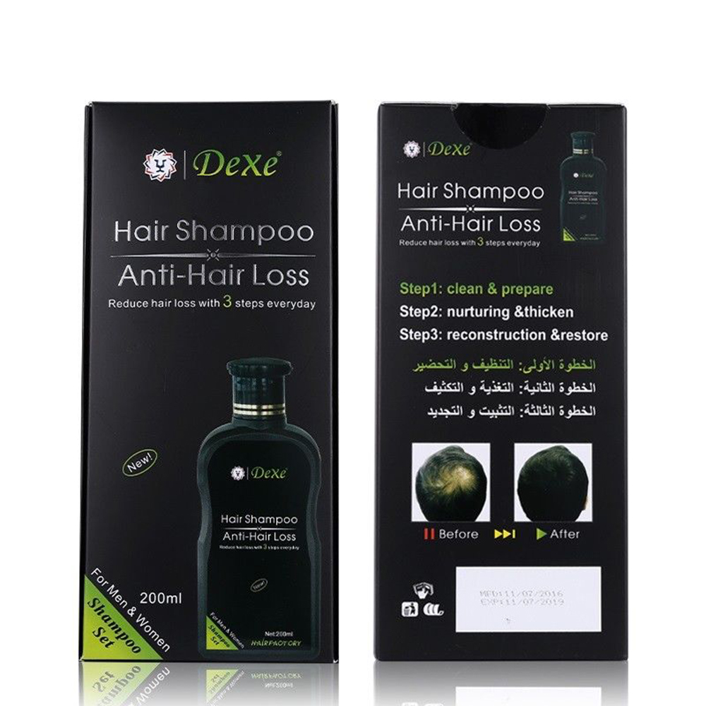 Dexe – שמפו אורגני למניעת נשירה ולחידוש צמיחת השיער, מכיל שמנים ותערובות צמחיות כגון ג’ינסנג, שמן עץ התה וג’ינג’ר.