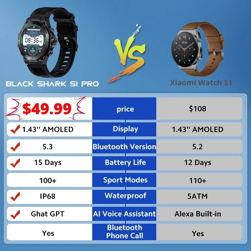שעון חכם עם ChatGPT דגם Black Shark S1 Pro
