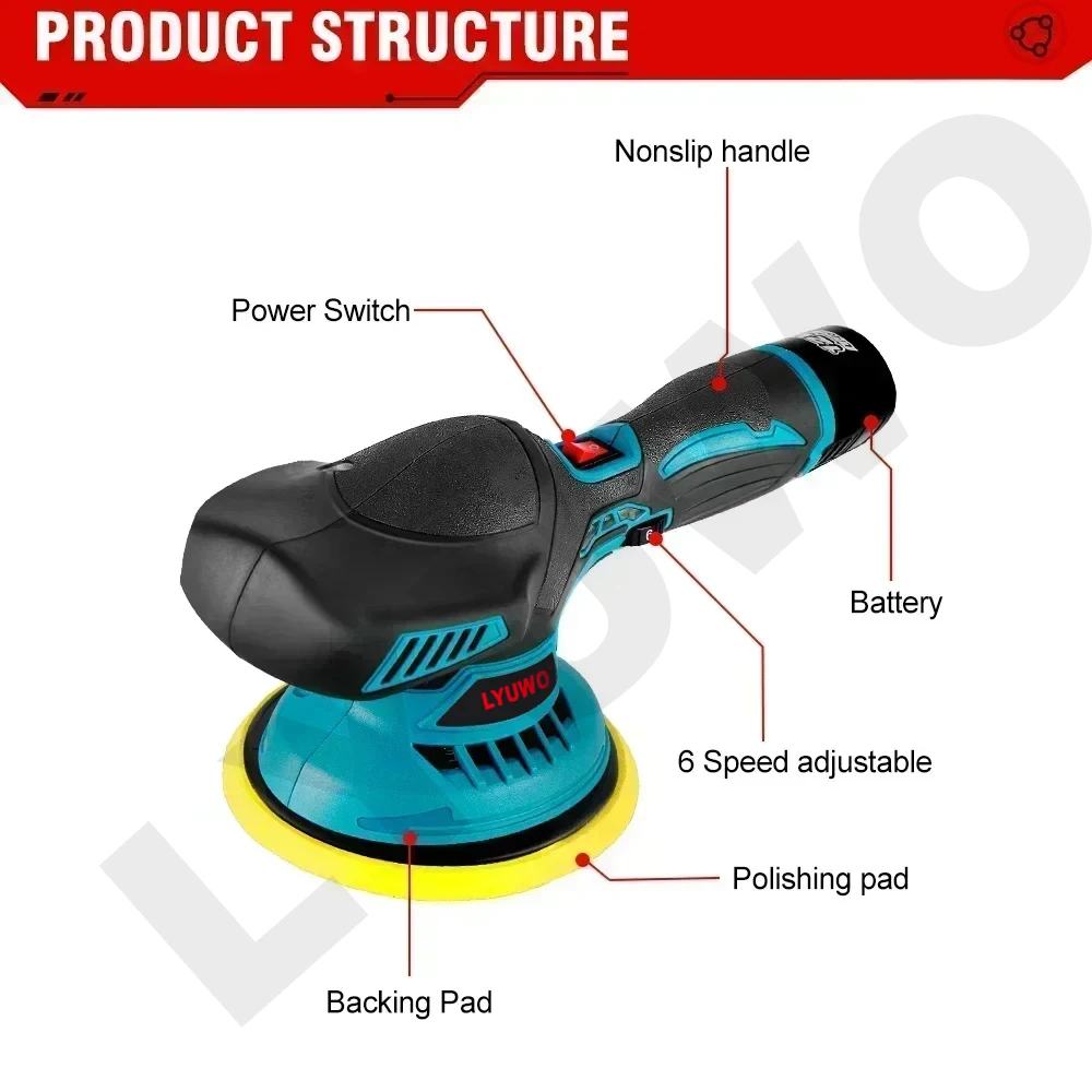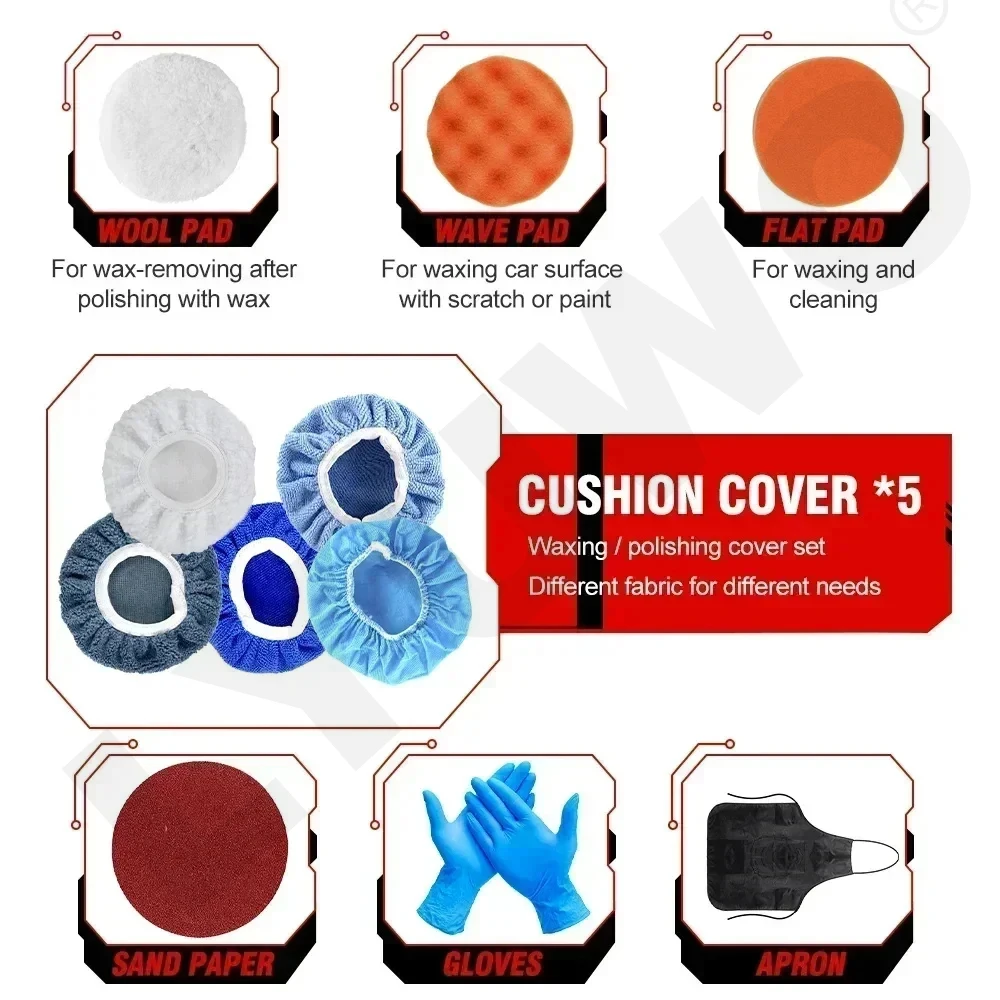 מכשיר פוליש לרכב אלחוטי נטען עם סט אביזרים מלא