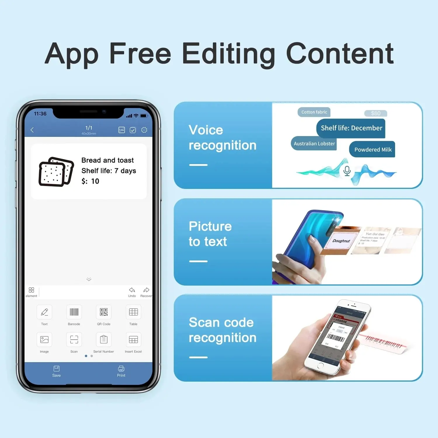התכונה הייחודית של המדפסת היא היכולת להדפיס מדבקות ישירות מהנייד שלכם, פשוט התקינו את האפליקציה שתומכת בכל מכשיר Android או בApple והתחברו בקלות בעזרת הBluetooth של המכשיר למדפסת ותתחילו להדפיס. אין צורך בחוטים מסובכים או בדיו יקר – הכל נעשה באופן אלחוטי ופשוט. האפליקציה החכמה של Niimbot מאפשרת לכם לעצב ולהדפיס מדבקות ברוחב של 20-50 מ"מ, עם מגוון פונטים, סמלים וברקודים.