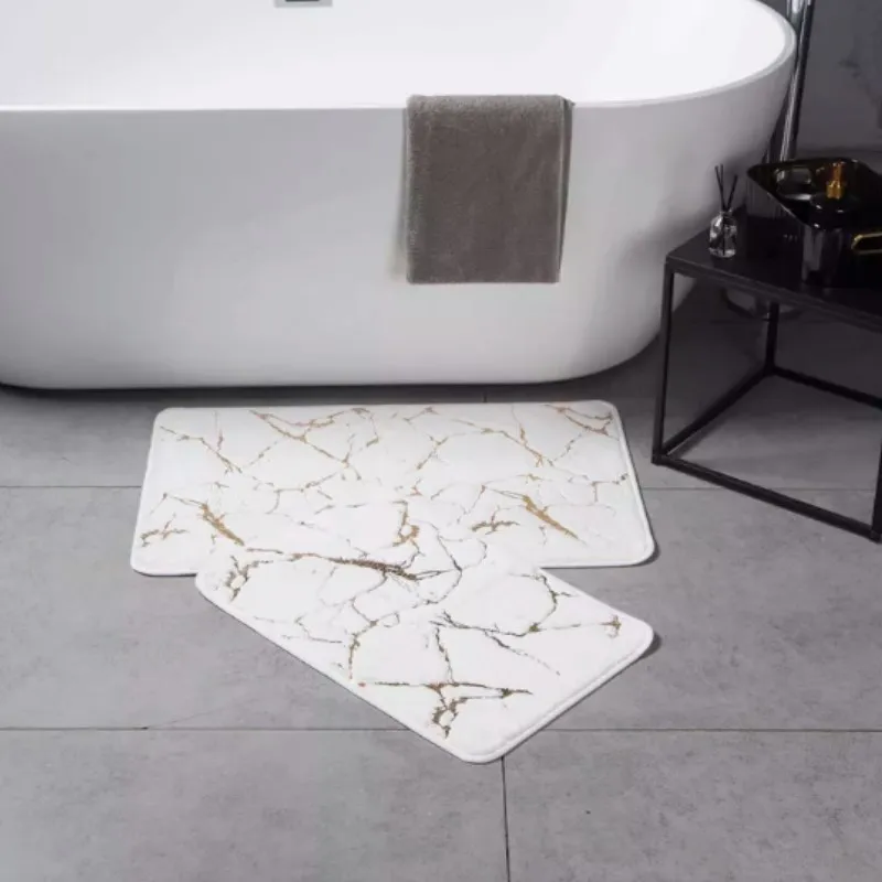 אל תתפשרו על בטיחות – גב השטיח לא מחליק ומבטיח שהשטיח יישאר במקומו באופן בטוח. העיצוב הייחודי בטקסטורת שיש מוסיף מגע של יוקרה לעיצוב חדר האמבטיה שלכם, ומשאיר את הרצפות יבשות ונקיות.