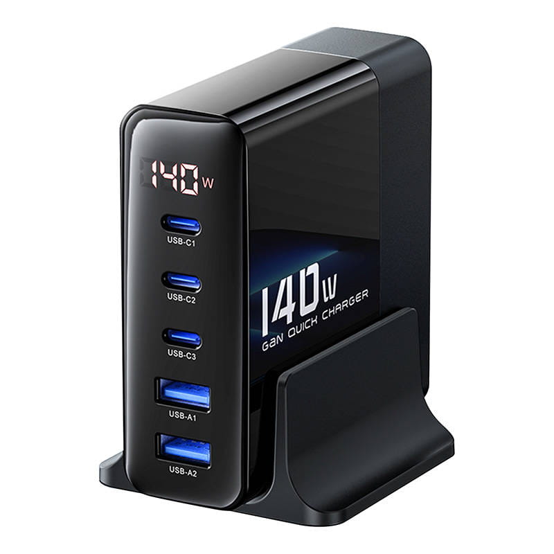 מטען שולחני מהיר עם 5 יציאות וטעינה מהירה עד 140 וואט ותצוגה מבית Toocki