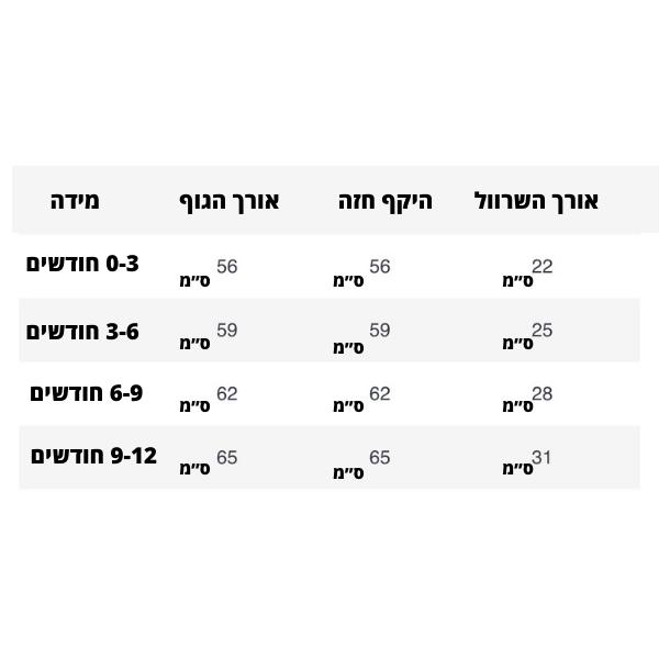 4. חום ונוחות בכל מקום: שומר על חום גופו של התינוק, מה שהופך אותו לאידיאלי לטיולים בחוץ בימים קרירים.